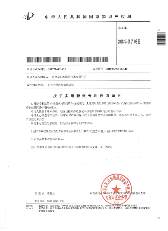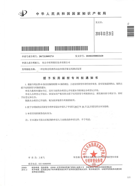 近日,公司申请的两个实用新型专利获得国家知识产权局授权